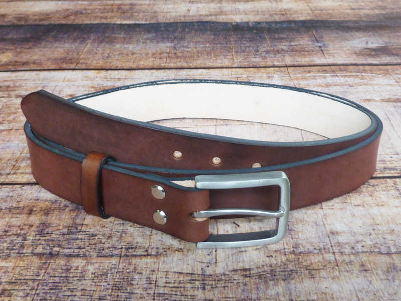 Hochwertiger, robuster Rindsledergürtel braun mit Edelstahlschnalle