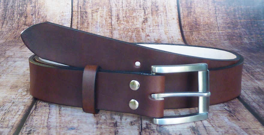 Hochwertiger, robuster Rindsledergürtel braun mit Edelstahlschnalle