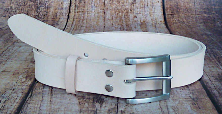 Preview: Hochwertiger, robuster Rindsledergürtel natur mit Edelstahlschnalle
