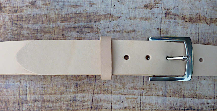 Besonders hochwertiger 38mm breiter Vollrindsledergürtel mit fest vernieteter Edelstahlschnalle ( glänzend ), matter Oberfläche und loser Lederschlaufe.