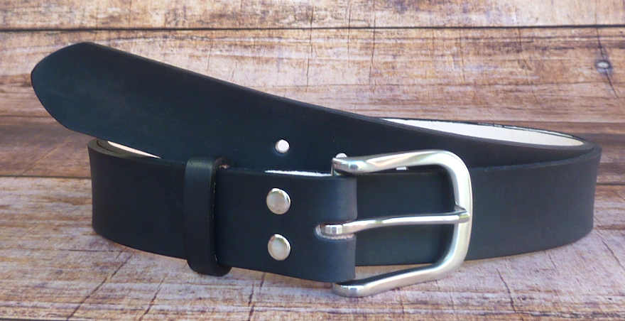 Hochwertiger, robuster Rindsledergürtel schwarz mit Edelstahlschnalle