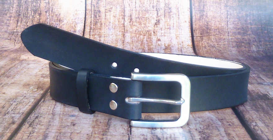 Preview: Hochwertiger, robuster Rindsledergürtel schwarz mit Edelstahlschnalle