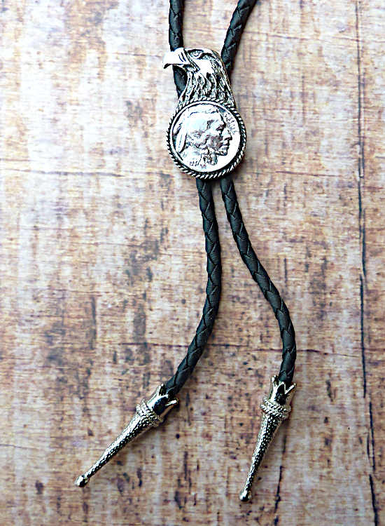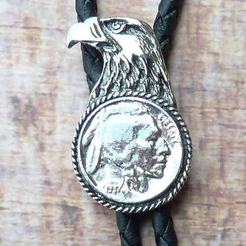 Bolotie Westernkravatte Adler und Münze mit Indianerkopf