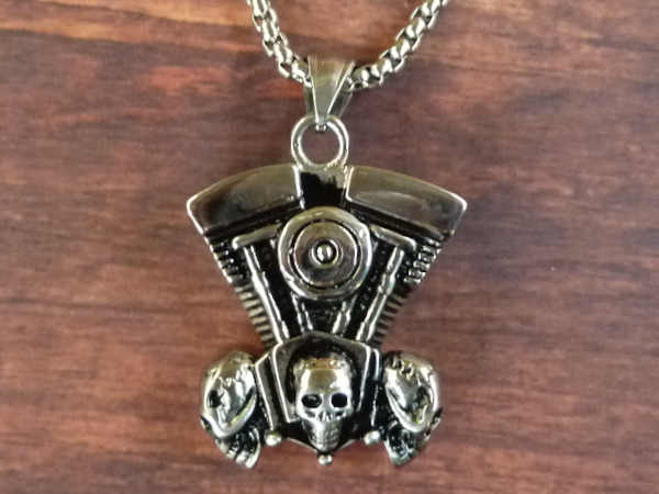 V-Motor Motorblock mit Totenköpfen, Biker Edelstahlkette und Anhänger