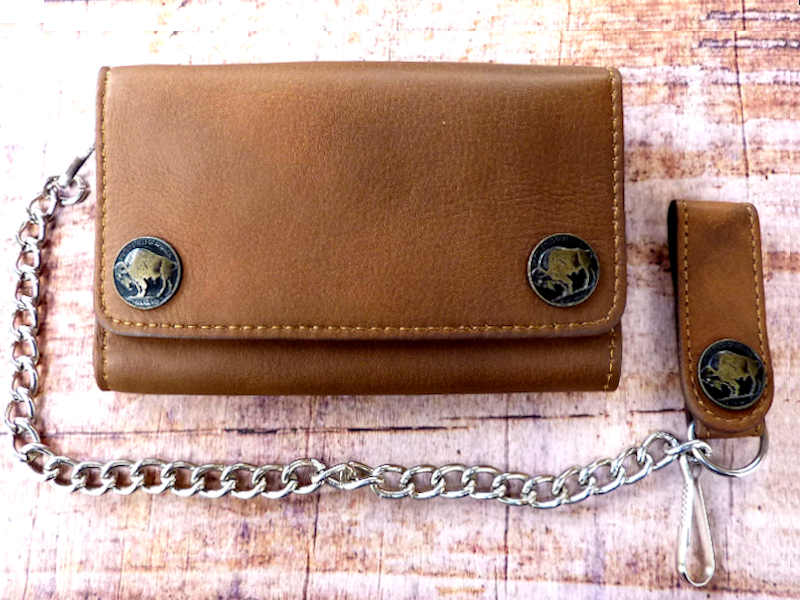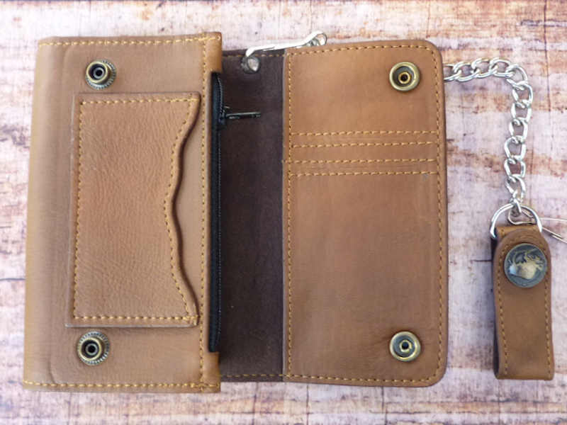 Bikerbörse, Rindsleder Geldbörse mit Kette, Braun